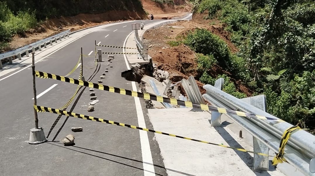 “Patut dipertanyakan mengenai kualitas pekerjaan proyek jalannya, mengapa bisa ambruk seperti ini padahal baru selesai pembangunan,” terang Bastian Ansori.