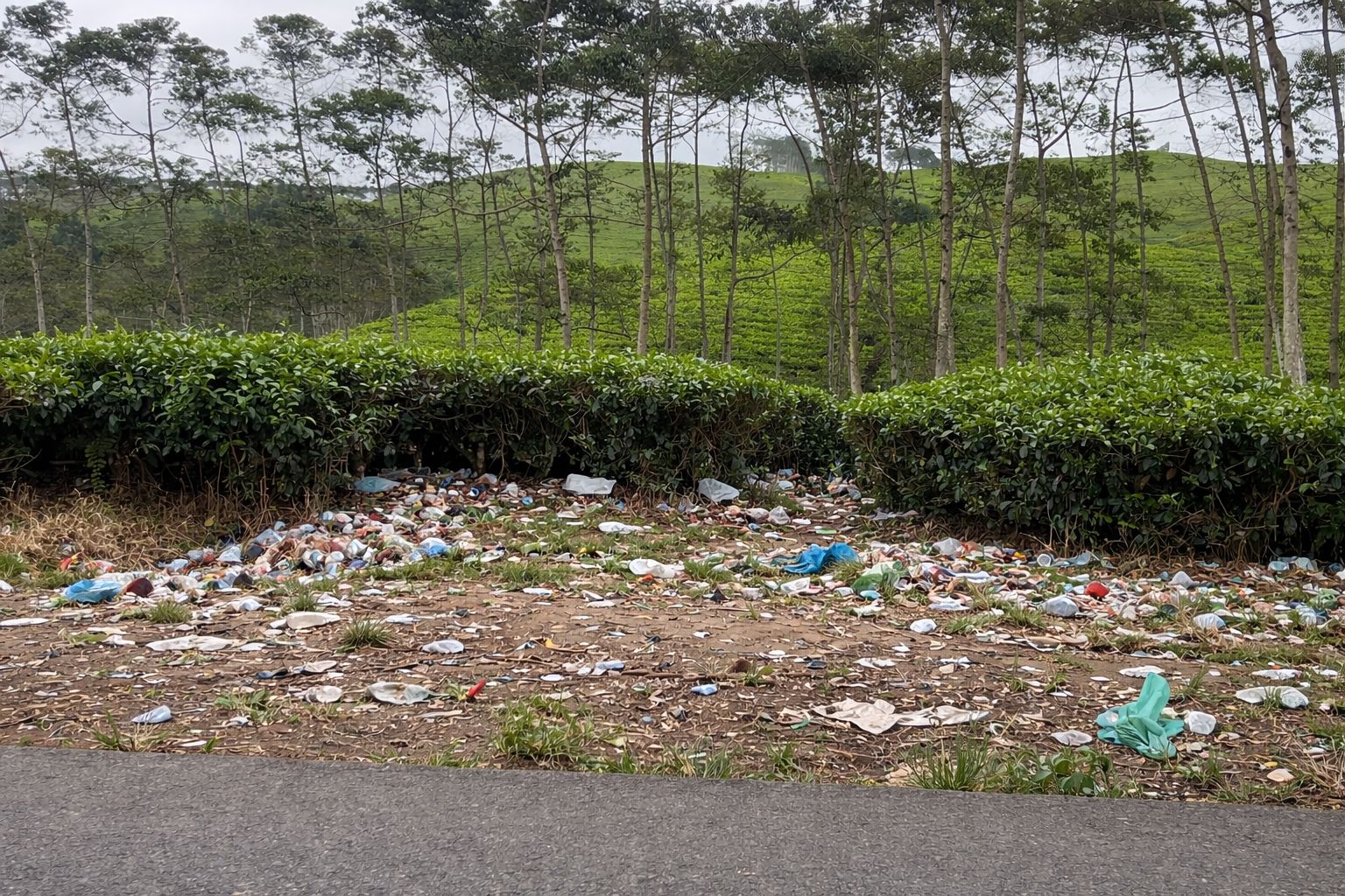 Ironisnya, di kawasan perkebunan teh, sampah ditemukan tersangkut di dahan tanaman hingga berserakan di bawahnya, seolah menjadi “lantai sampah” yang merusak panorama hijau yang seharusnya menjadi daya tarik utama.