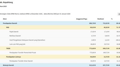 INDOKAYA KEPAHIANG – Laporan realisasi Anggaran Pendapatan dan Belanja Daerah (APBD) Kabupaten Kepahiang Tahun Anggaran…