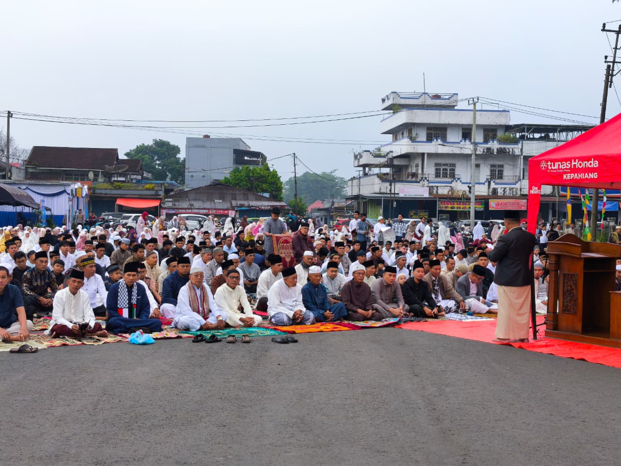 Wakil Bupati Kepahiang Ir. Abdul Hafizh, M.Si melaksanakan Shalat Idul Fitri bersama Pimpinan Daerah Muhammadiyah (PDM) Kepahiang di Terminal Pasar Kepahiang, Jumat (20/3/2026) pukul 07.00 WIB.